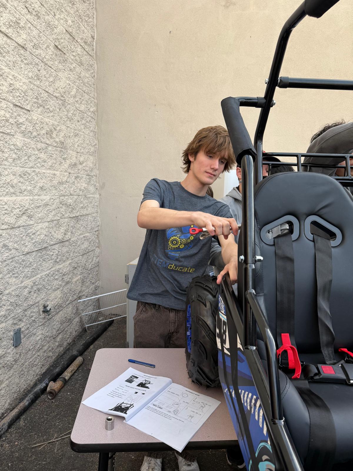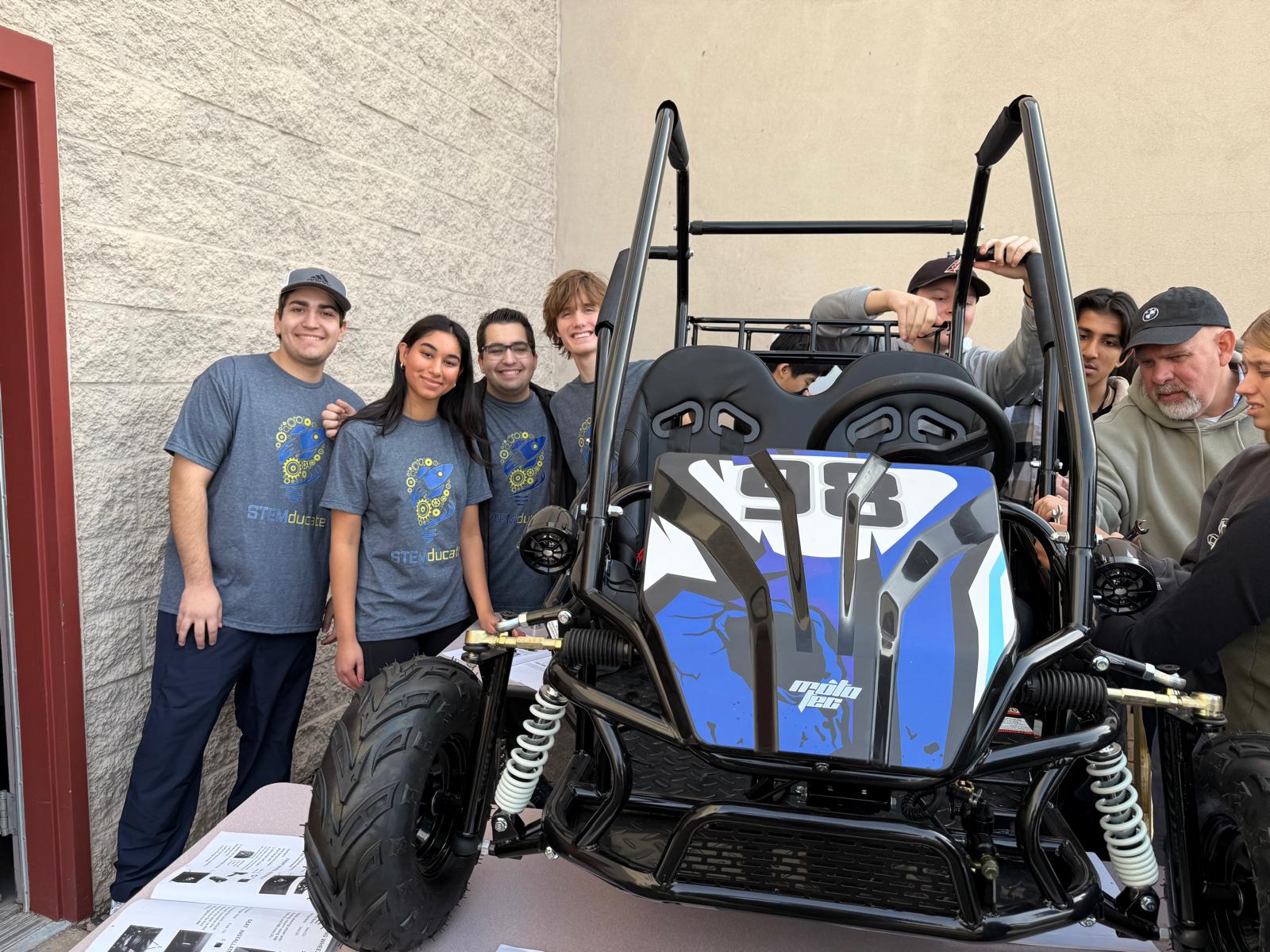 On December 11 2024, the Desert Mountain High School Robotics and Engineering Class came together, in sponsorship with ADOT and STEMducate, to inspire students to learn about automotive technology and manufacturing by building an Electric Go Kart. This encouraged students to learn more about electrical engineering, specifically electric motor integration, battery systems, wiring, and electronics. Students learned about the control system, and they learned how mechanical, electrical, and software engineering work seamlessly together in vehicles. Students learned how to resolve conflicts between subsystems in order to optimize overall performance in the electric vehicle. Students learned to problem-solve through teamwork and creativity, as they move through stages of planning, prototyping, testing, and the final assembly of the vehicle, to create a functional, innovative, and sustainable product.